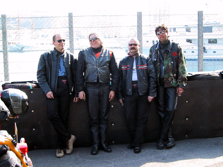 Für den Weg nach St. Tropez hatte ich mir die Strecke Meran, Genua und dann die Küstenstraße entlang ausgesucht. Kurz hinter dem Gardatal traf ich vier Piloten die auch zum Treffen wollten. Kurz um, von da an fuhren wir zu fünft und hatten Spaß wie doll. Zum einen war das Tempo nicht von schlechten Eltern, ebenso wie die Strecken-auswahl. Kleine und kleinste Landstrassen wurden auf dem Weg zum Mittelmeer unter die Reifen genommen. Ein fünf Sternehotel in Portofino diente als Herberge für die Nacht. Am nächsten Tag fuhren wir dann am Meer entlang, bis nach Juan Les Pins. Unterbrochen von einer Stippvisite bei den Grimaldi's. Und ja, das Café de Paris in Monaco ist scheissteuer. Tags darauf ging's dann die restlichen paar Kilometer nach Port Grimaud.