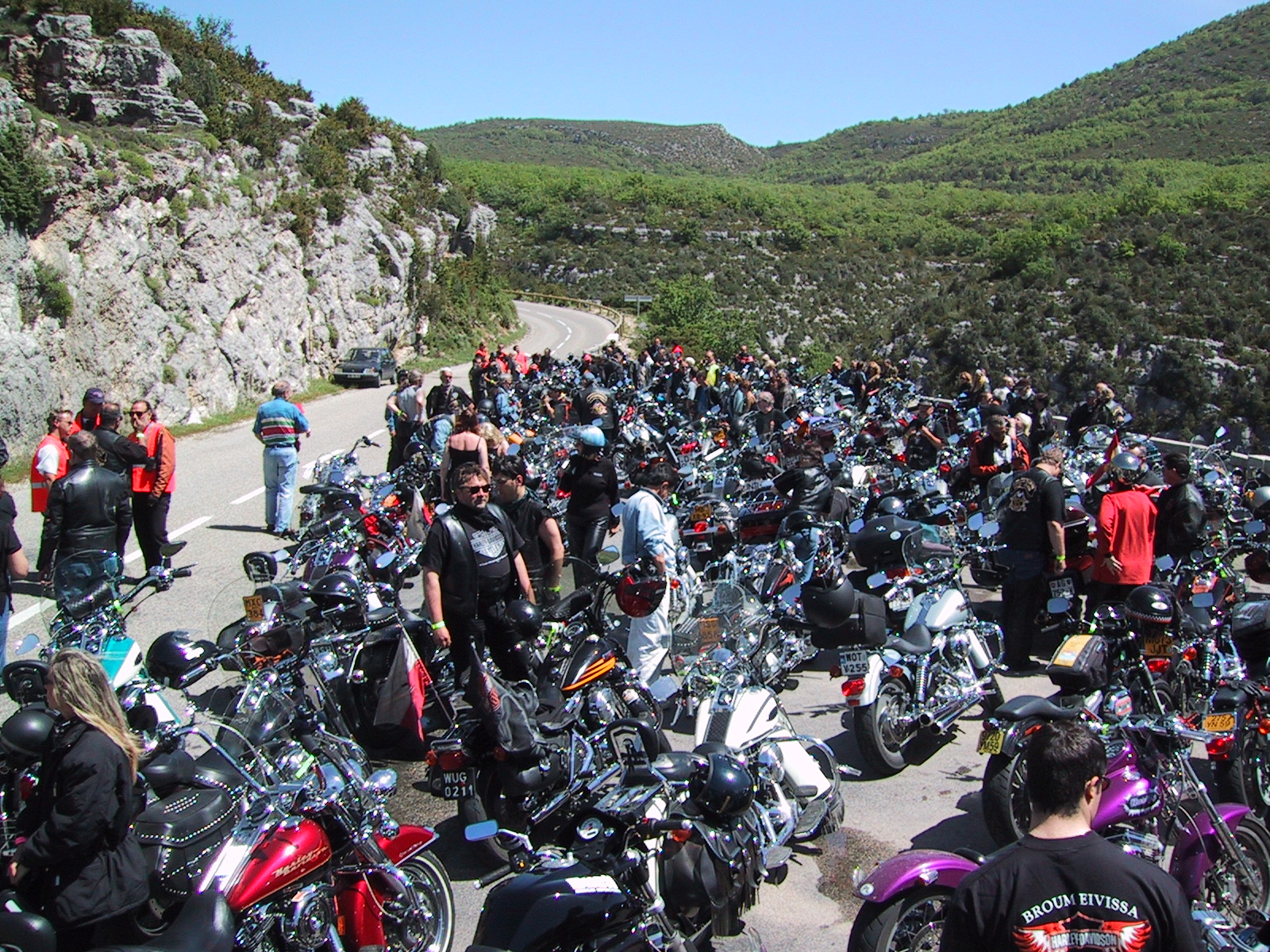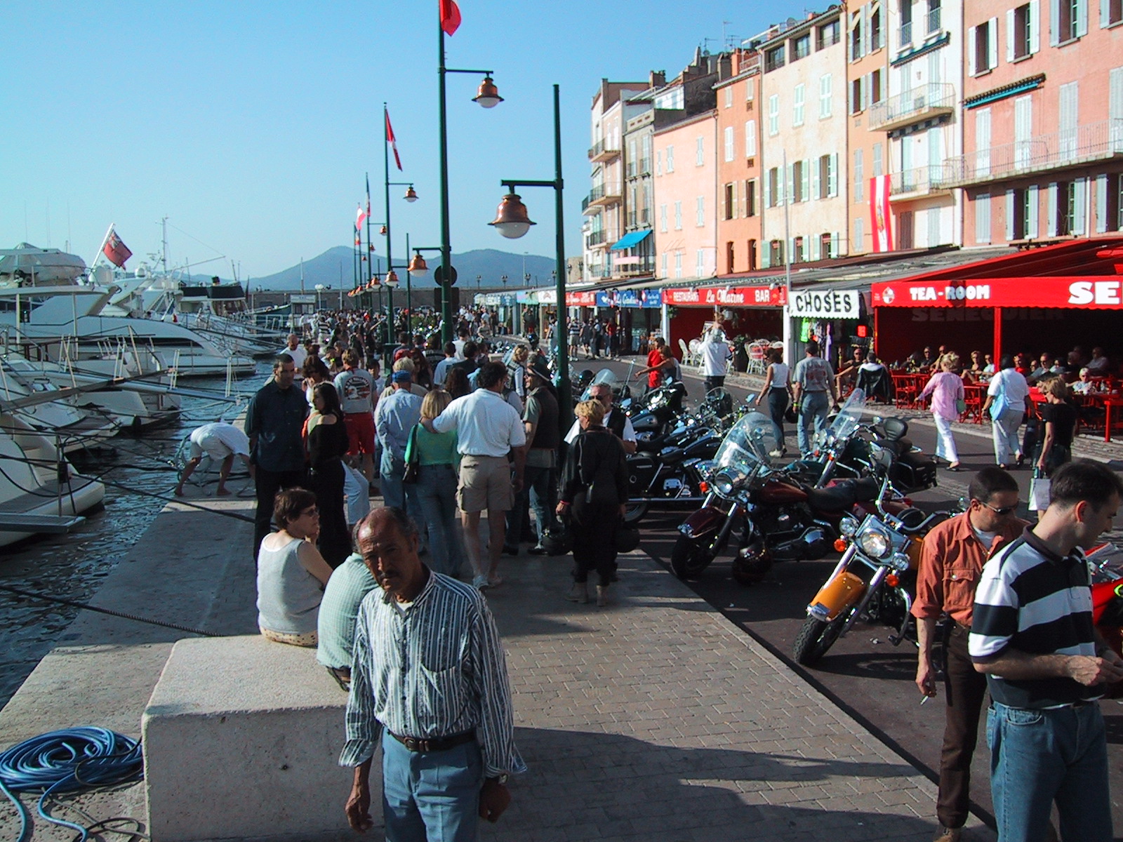 Das sonst schon rege Treiben im Jachthafen von St. Tropez wurde nun durch die Anwesenheit von zig Tausend Bikern etwas verschärft. Mancher Yachteigner hatte gut zu tun, die Gummibrocken der Burn Out's vom schönen weißen Rumpf zu kratzen. Wir sahen gerne dabei zu. Abends am Fetenstrand traf sich allerlei verschieden gewandetes Volk zum Schaulauf der Eitelkeiten. Durchaus sehenswert.