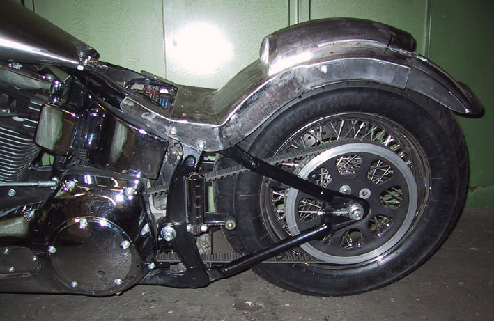 Damit das Heck im Fahrbetrieb höher gestellt werden kann (größere Schräglagenfreiheit), wurden die Aufnahmepunkte an Dämpfersystem um 10mm eingekürzt. Damit wurde auch gewährleistet, daß bei einem Totalausfall des Dämpfersystems das Hinterrad beweglich bleibt.