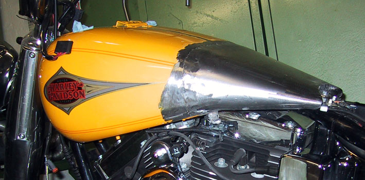 Durch anschweißen einer selbst gebauten Stahlhülse wurde der einteilige Tank um ca. 15cm nach hinten verlängert.