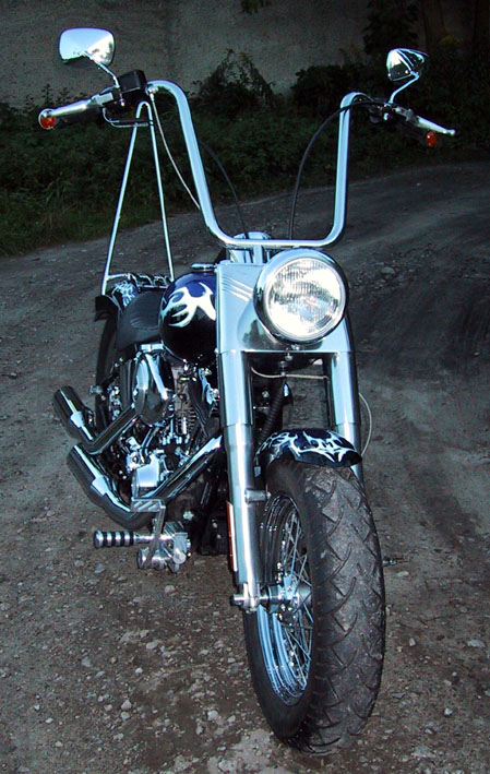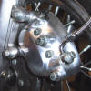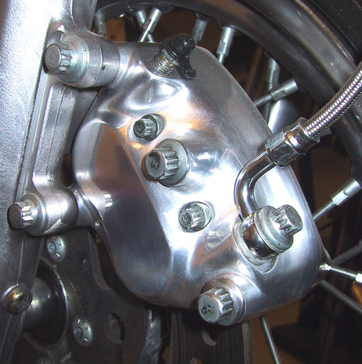 Vorderer und hinterer Bremssattel, Felgenpolly und Fußrastenanlage (Aluminium) wurden Hochglanzpoliert. Ebenso der Gepäckträger nebst Sissybar (V2A)