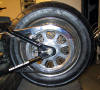 5" x 16" Felge mit 80 Speichen aus V2A mit 180/70R16 Metzler, mittig eingespeicht.
